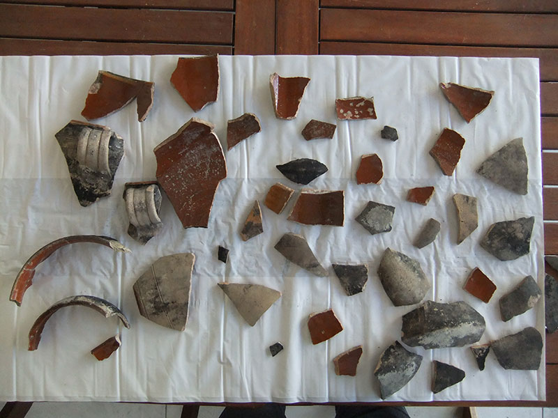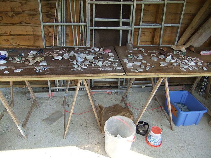 Déménagées à la maison, ces caisses contiennent des objets qui proviennent des fouilles organisées dans différents lieux du village.